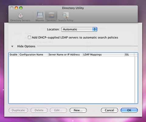 With the background stuff out of the way, we can focus on setting up OpenLDAP for Mac OS X clients. It turns out there is a little bit of work to do on both the OS X client and the Linux server.