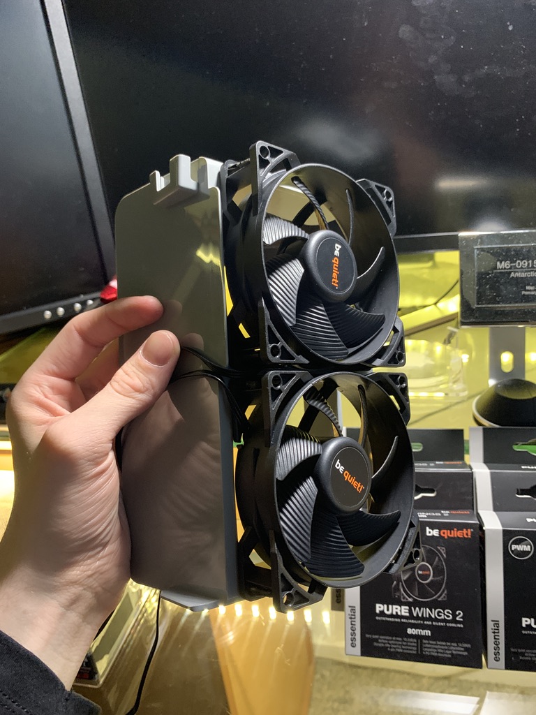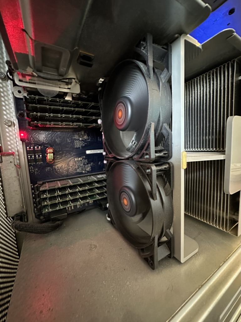 - These fans were wired to their original power rails, to attempt to replicate OEM fan functionality as closely as possible. Although fans do seem to ramp up and down when the plastic shield is off, and the computer stays the same volume no matter how much I push it, I haven’t at all verified if the fans are indeed ramping up and down outside the OEM PSU fans. I can only testify that the non OEM fans, when hooked up to the power rails, will work!
