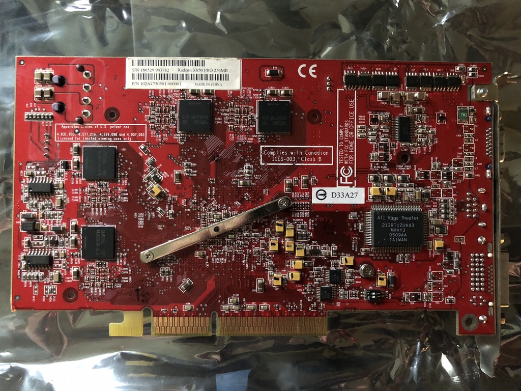 - An ATI Radeon X850 Pro 256 MB, flashed over to a Mac ROM for an ATI Radeon X850XT, has boot image and all. Slight memory overclock but slight core under clock to keep the card cool.