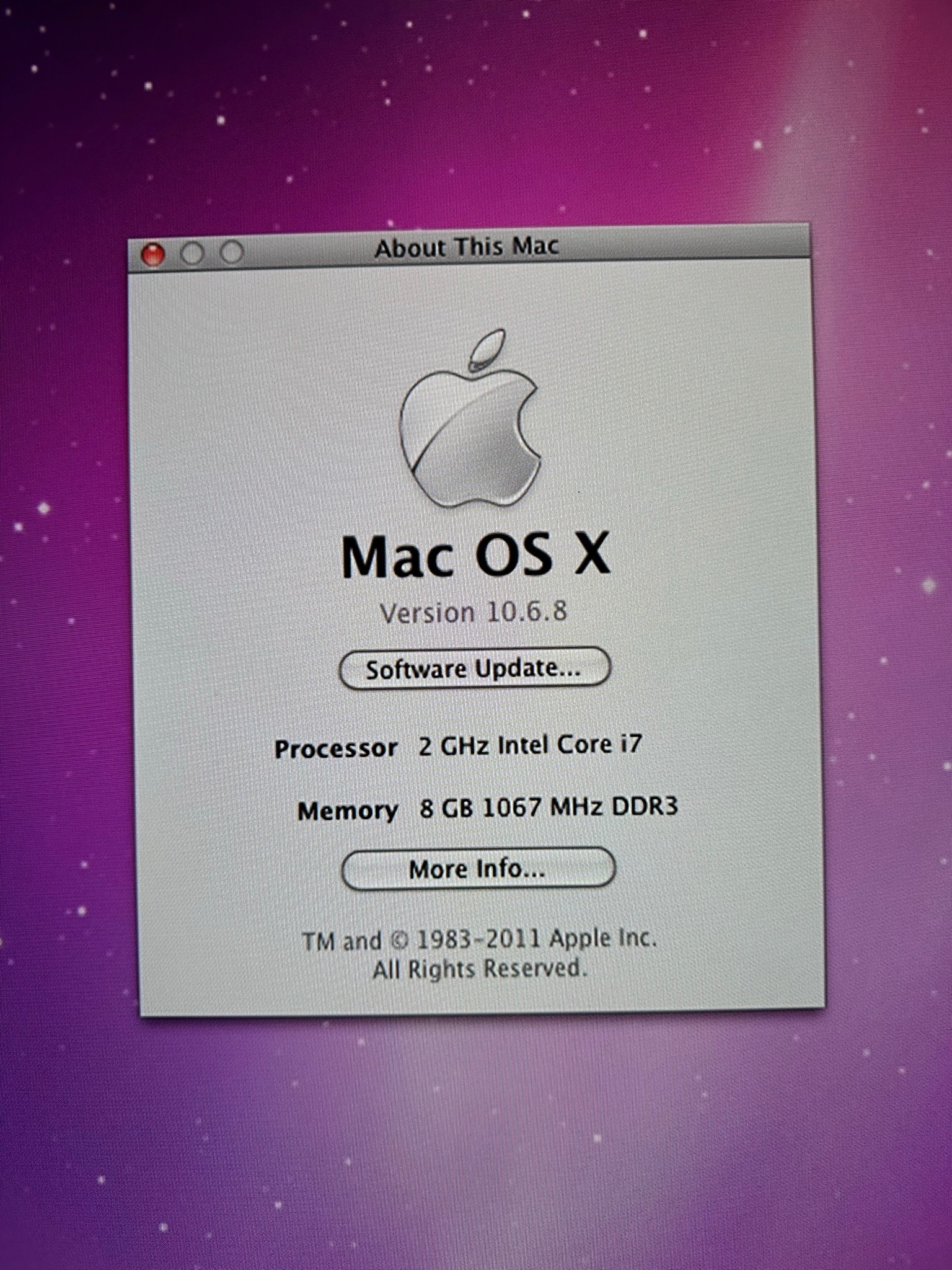 - After enjoying the intro video, configure your machine and you’ll get what appears to be a normally functioning 2011 Mac Mini running Snow Leopard. Unfortunately, that not quite the case yet.. There’s several things to sort out involving 3 critical kernel extension files that will make your 2011 Mac Mini fully functional in Snow Leopard. One of them resides on the Lion Partition that was created as part of the “Pre-Flight” prep and the other two I found easiest to track down using a 2011 MacBook Pro as mentioned above.