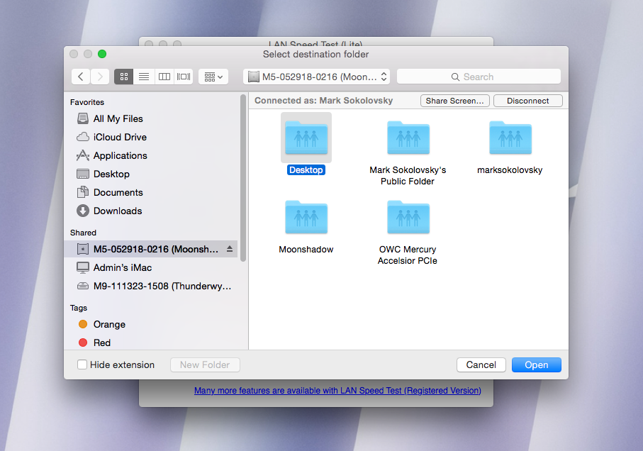 This app (in the form that I have it) can test the read and write speeds of volumes over the Local Area Network. Whether it’s selected as a folder in Finder or manually entered as an IP address, it’ll send data packets to and from the devices of your choice.
