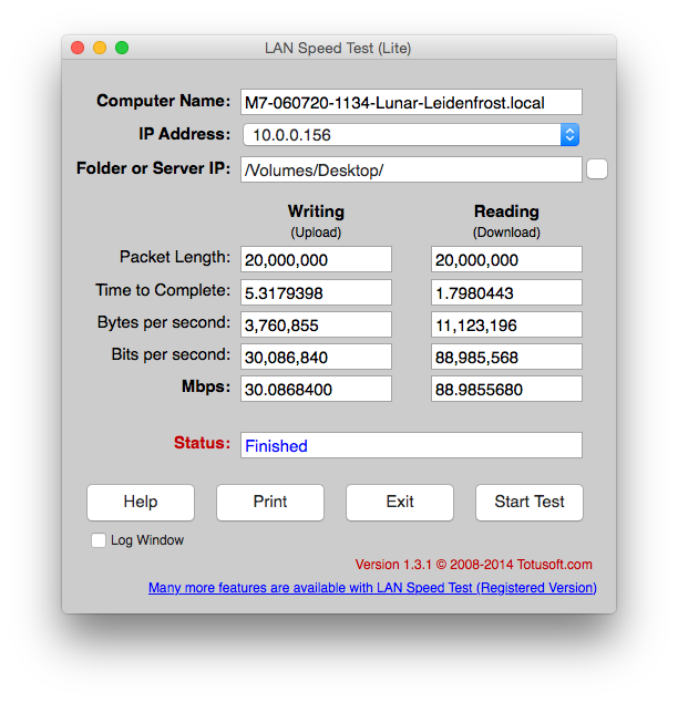 - Download: LAN_SpeedTest.app.zip (159 KB, LEM Software Repository)