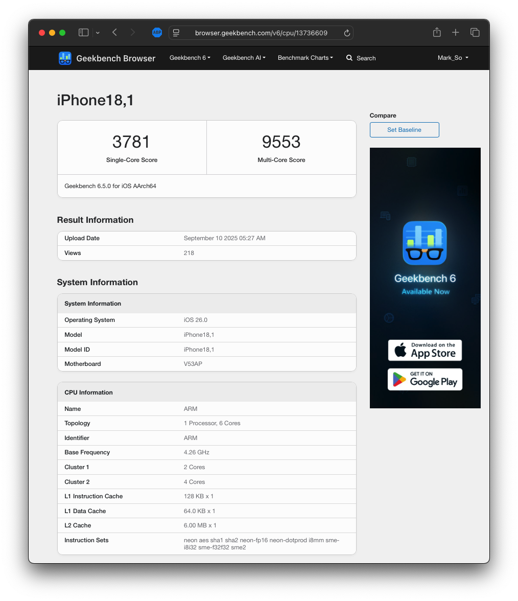 Apple knows, and so do the people who benched these different models. I tried to google the model numbers but nothing came up, so until some more tests come in, we’ll just have to guess a little. We already know the iPhone 18,3 is the standard iPhone 17, since the A19 pro comes with 50% more L2 cache.