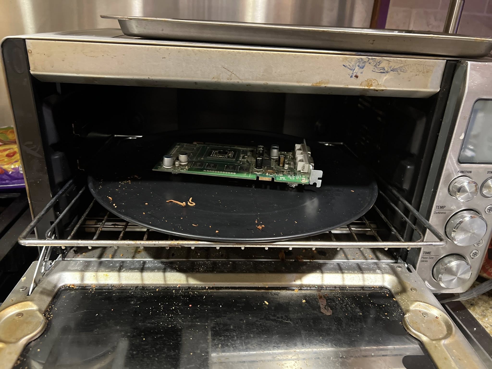A community member replied: “The important thing to know is this: When the GPU goes, it’s typically a bond wire within the GPU and not a bad solder ball under it. Though solder balls can be replaced and the chip re-attached, it’s a complex procedure and really needs an expensive machine to do correctly. Heating the whole board in an oven can damage other components like the capacitors.