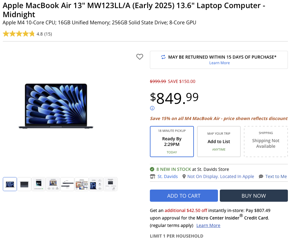 Low End Mac is not in any way affiliated with Micro Center, these are just my own personal recommendations as I spotted them and strongly recommend getting computer parts there also. They tend to have the better (if not, best) deals for new Macs, although I also spotted a $799 13-Inch M4 MacBook Air deal on Amazon, recommended by 9to5Mac.