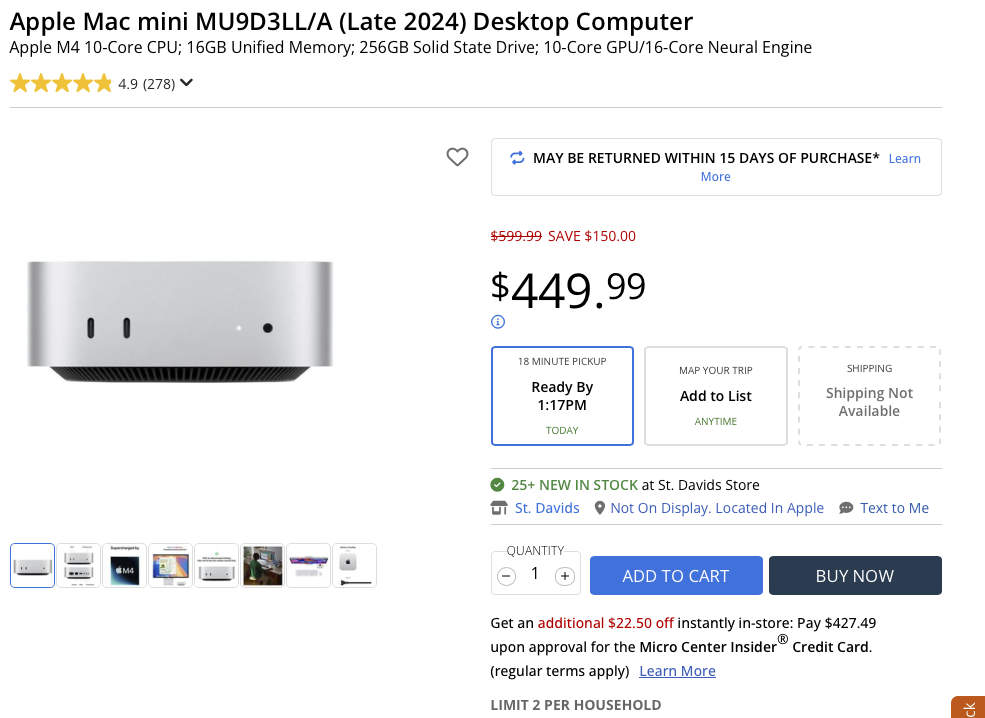 . - Limit 2 per-household (For the Mac mini). This varies depending on the item, check site pages.