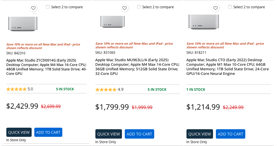 There are 28 Micro Center stores scattered around the nation in 19 states, and each one of them has Mac deals on the latest ’round on what Apple has to offer, as well as good pickings on refurbished M3 Macs, too.