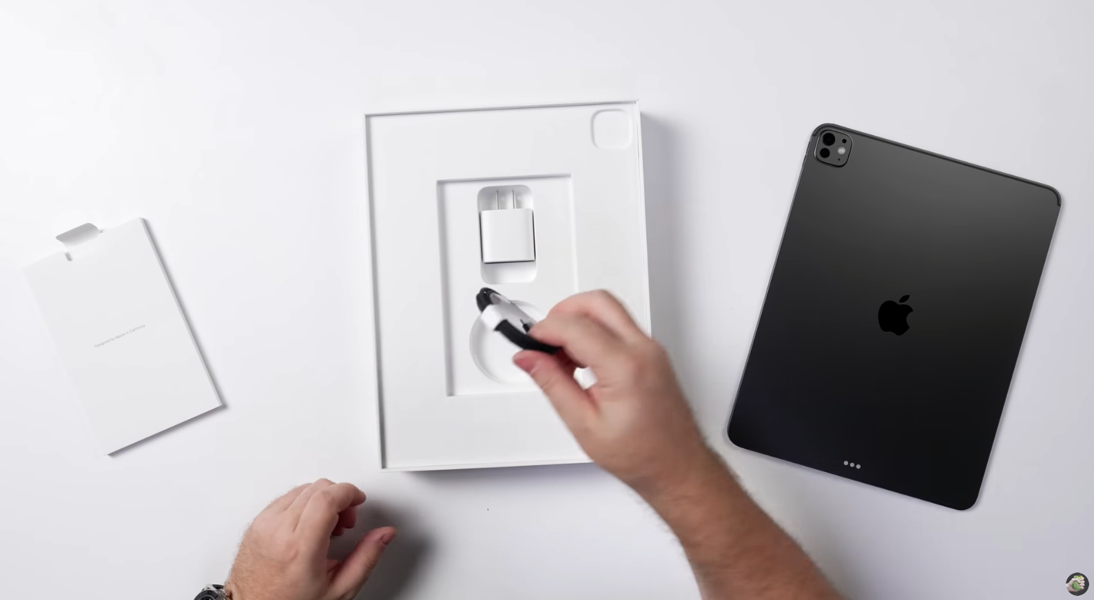 Unboxed on the Wylsacom YouTube channel, the M5 iPad Pro appears to be extremely similar to the M4 iPad Pro on the outside. The box this year is thinner, it comes with a 20W charging brick, and a black-color braided USB-C cable. Like this year’s iPhones, the M5 iPad Pro is devoid of any markings on the back – signaling a potential slight design iteration.