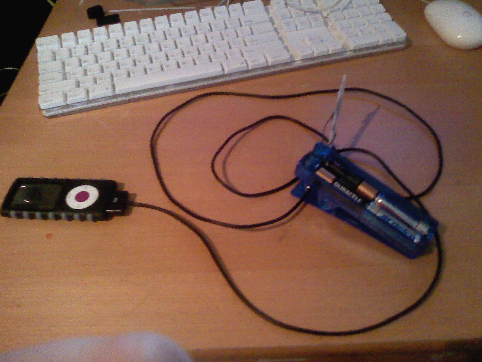 A friend gave me water-damaged iPod with a dead battery, which could be revived only by keeping it plugged in. I was too lazy to take it apart and fix it, so instead I just made a portable 4x AA Duracell battery bank. Modern problems require modern solutions.