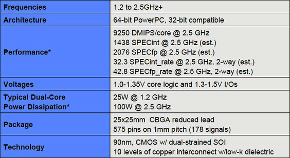 The PowerPC 970GX was merely a single core version of the 970MP, retaining the full 1 MB of L2 cache, and consuming lesser power from having only one core. This chip was produced in October 2006, after the final PowerPC Mac shipped, yet, it finally hit the 3 GHz mark Apple was looking for. This chip ranged from 1.2 to 3 GHz, consumed 16W at 1.6 GHz and 85W at 3 GHz.