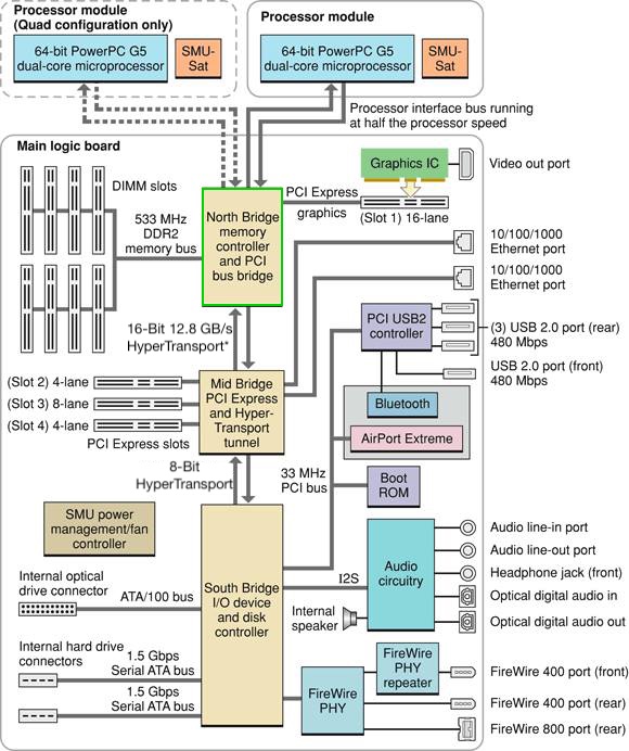 . - Has two, 625 MHz Unidirectional CPU buses (typical), but the processor interface bus in a Late 2005 Power Mac G5 runs at half the processor speed instead.