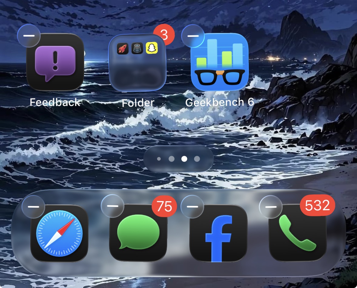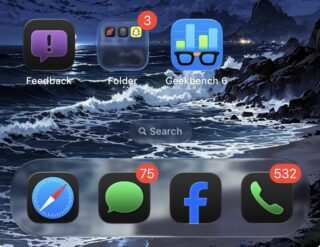 - When rearranging the home screen, the red numbered notification badge sits under the glass folders but not the apps.