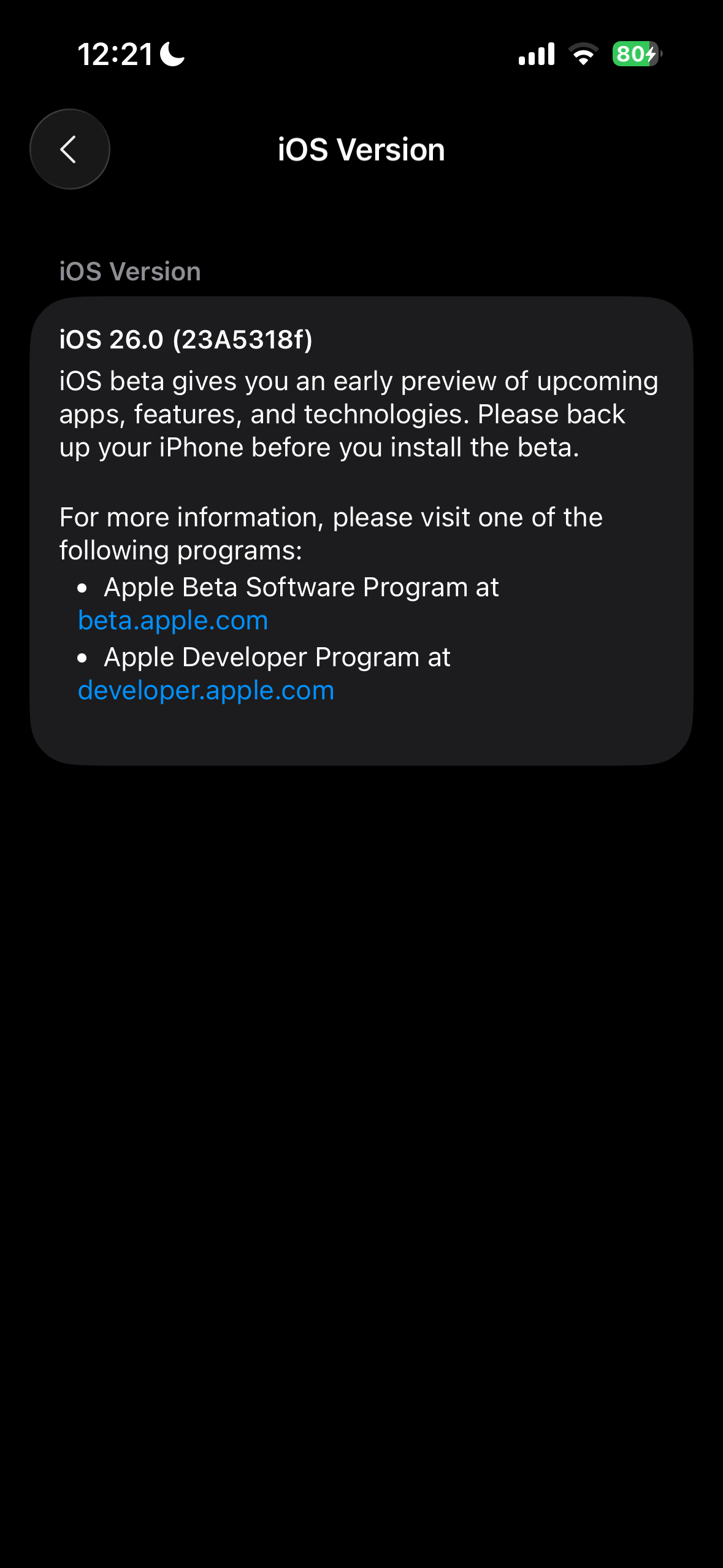 . - August 11th, 2025: Developer Beta 6 (Build 23A5318c)