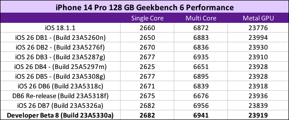 Even though the benchmarks show this is by far the fastest beta of iOS 26, there seem to be some bugs that stop this short of being acceptable as an RC candidate. If there are Safari performance issues, certain UI buttons not working, corruption on certain visual elements and perhaps even UI inconsistencies, we may possibly see a 9th Developer Beta.
