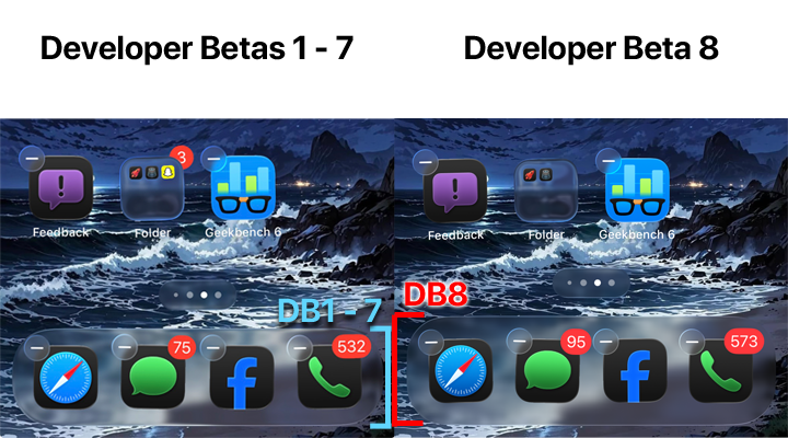 It’s even worth mentioning the IPSW files for the 7th and 8th Developer Betas are exactly the sane size, at 10.51 GB. Mostly everyone is saying there are no discernible differences in Liquid Glass or animations between DB7 and DB8.