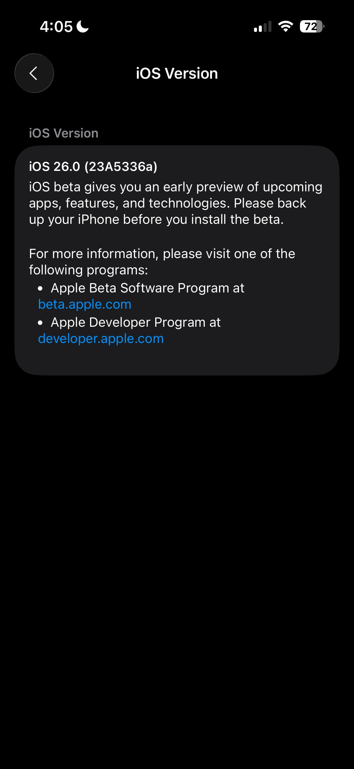 . - July 22nd, 2025: Developer Beta 4 (Build 23A5297i)