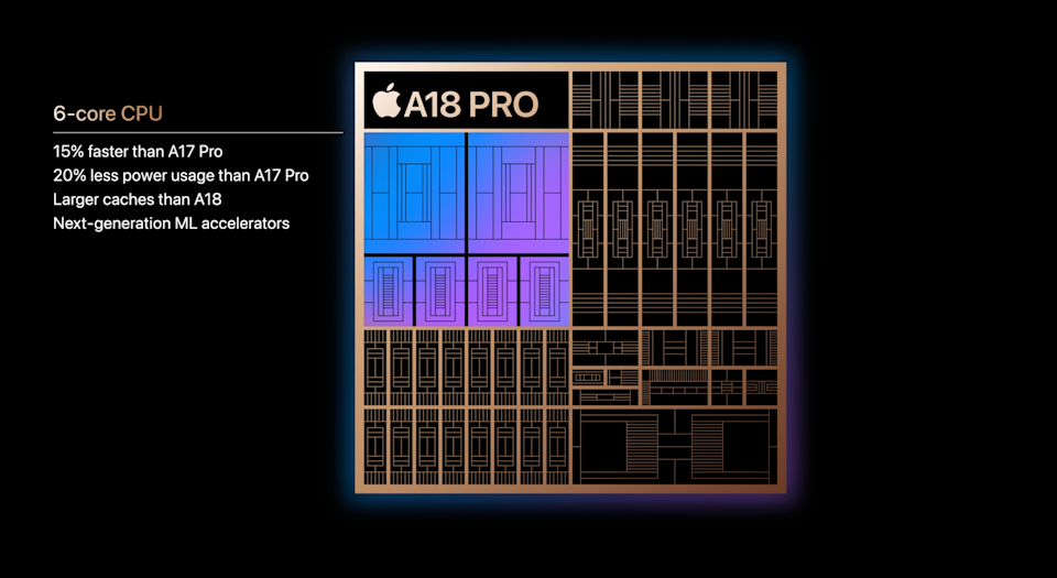 - See: Apple silicon, Wikipedia, the free encyclopedia – A18 Pro chip specs