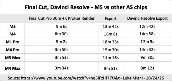 (Source: HOW did Apple pull this off? M5 Chip review – Luke Miani – URL)