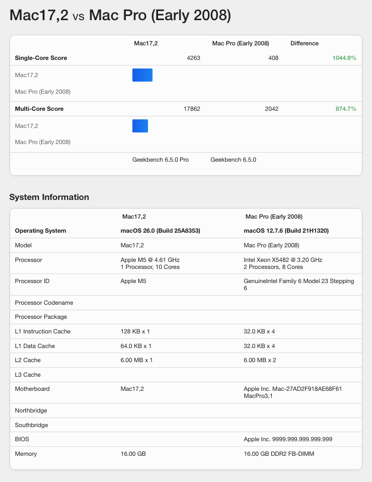 M5 MacBook Pro vs 8-Core 3.2 GHz 2008 Mac Pro