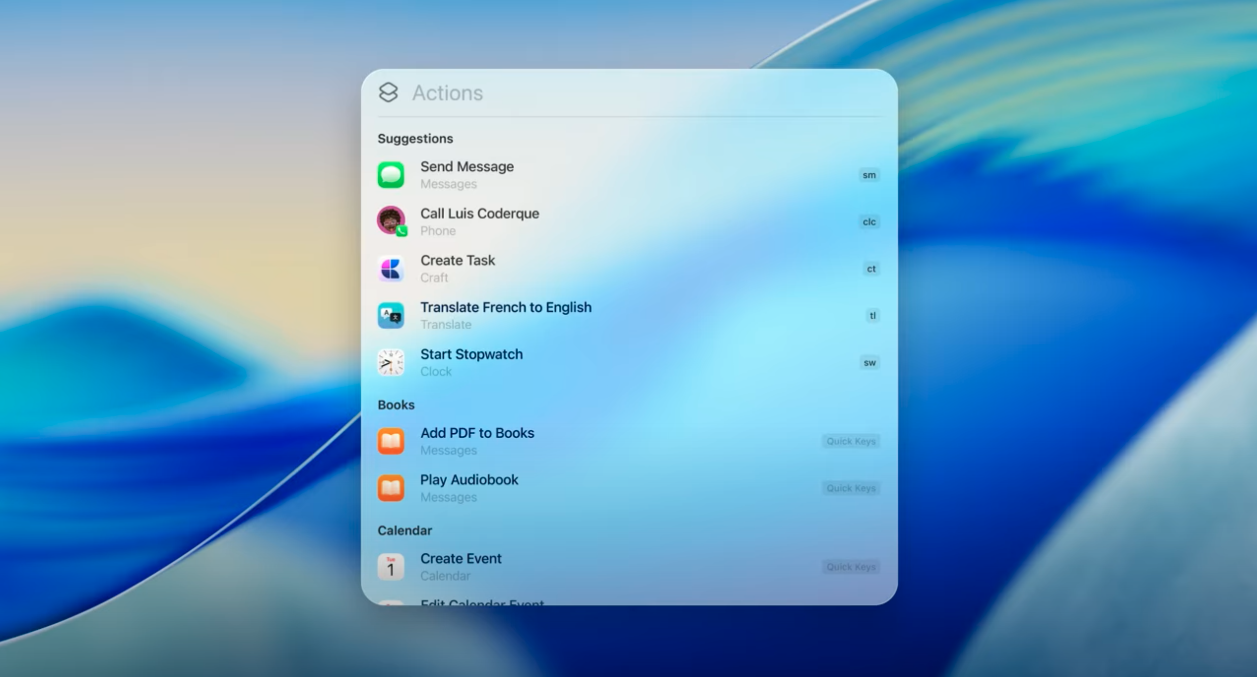. - Intelligent actions powered by Apple Intelligence – dedicated actions for features people are already familiar with (like summarizing text, etc;)
