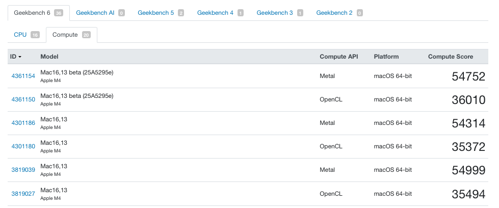. - The decrease in GPU scores in Beta 1 versus Beta 2 and macOS 15.2 supports my perception that the Liquid Glass UI was buggy and sluggish in Beta 1. There was alot more stuttering, almost as though my 60 Hz refresh rate felt like a 30 Hz.