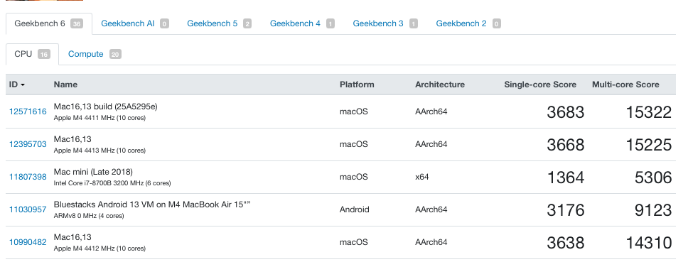 While artificial benchmarks only tell part of the story when it comes to the performance of any device, they still offer some form of insight. Ever since I got my own M4 MacBook Air, I benched it on Geekbench 6 in the same environment.