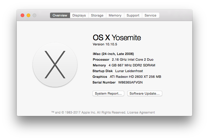 Using the Piker Alpha mod with El Capitan presents a memory leak issue. Back in the day when I had a Mac Pro 2,1 with 64 GB RAM I’d never run into any problems. El Capitan kernel panics after a few minutes using the Piker Alpha mod on this iMac, so an alternative patching method has to be used (and I think I found one). In the meantime, I’ve stuck to Yosemite for slightly better compatibility.