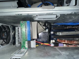 This was covered in the 2023 article, but will be briefly covered here as well. I was able to tap into the Power Mac’s 12v power rails to get the fans spinning, but in no way do the fan speeds appear to be controlled. The noise level is very constant, and in a 2024 YouTube video it appears around 41 – 45 decibels according to a test.