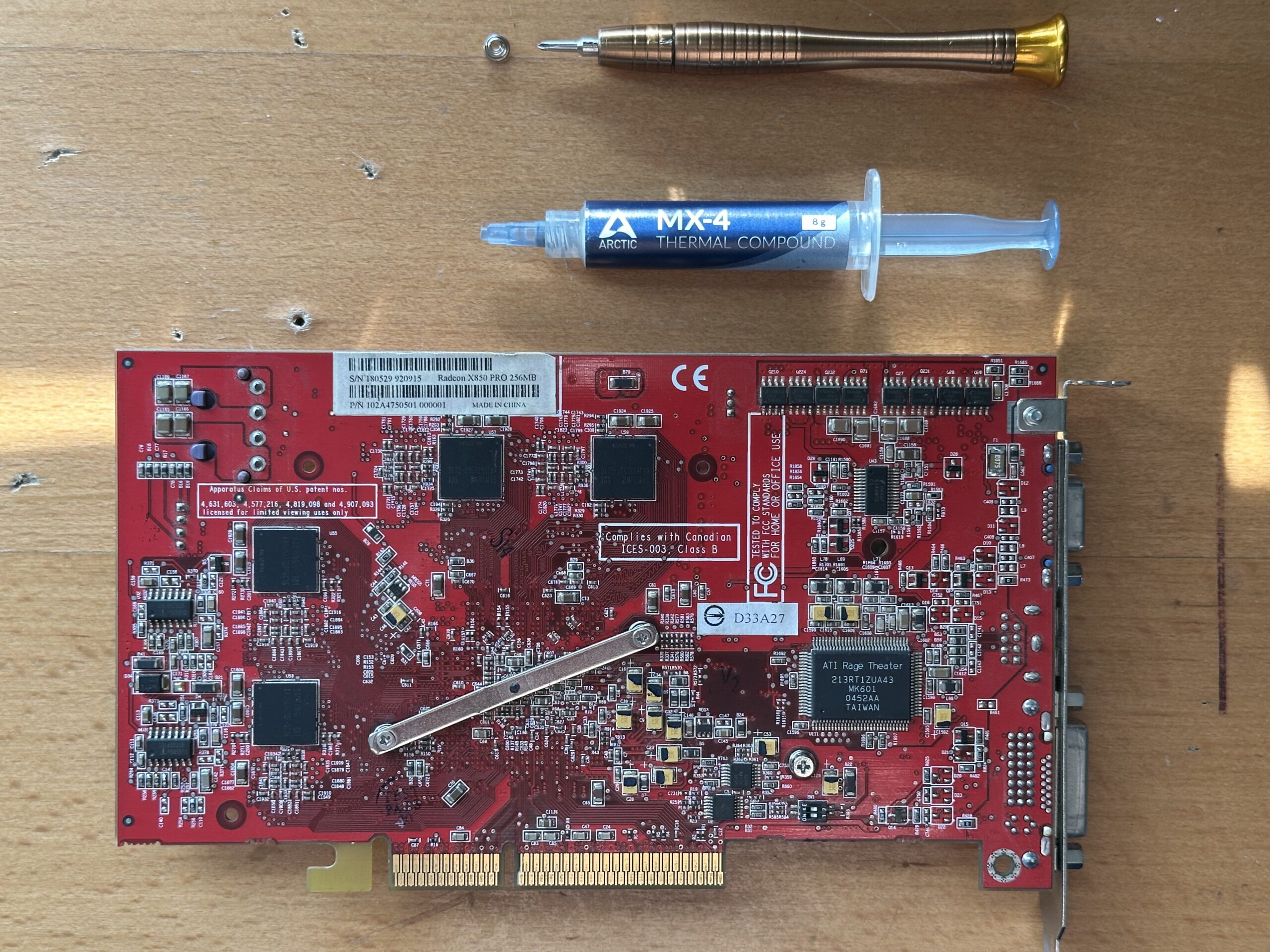 After much trial and error, the most important thing is not only having a powerful build, but a stable one also. Much of my earlier time with the X850 Pro turned-X850XT Mad edition was marred with graphical artifacts. Once I had it sent back to me with fixed memory chips, it’s been running great with an underclock, as well as adding springs to turn this into a pressure-mounted heatsink. The below linked article goes into serious detail.