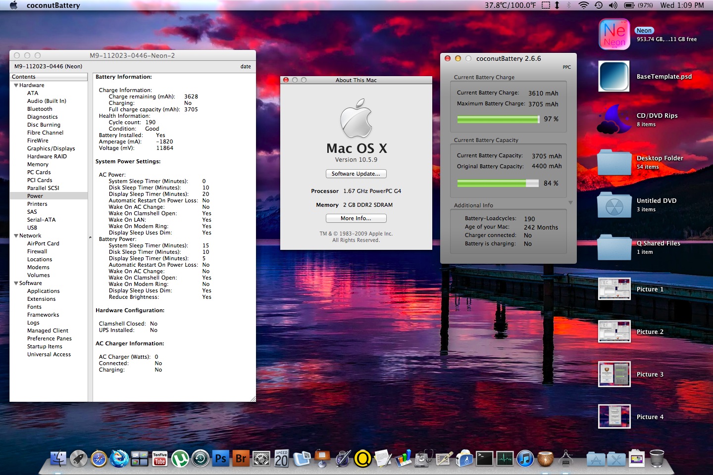 Photoshop CS4 runs pretty nicely on here as well, and the ‘Book has ethernet+Bluetooth+USB in case I ever decide to dock the laptop and set it up with some peripherals. If I want to have an hours-long video streamed in WebKit in Sorbet Leopard on Youtube, it will hardly drop any frames.