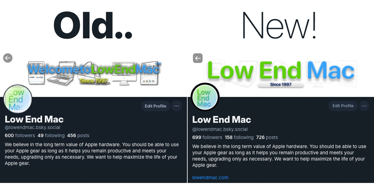 On our BlueSky account, the profile picture cut off the square logo and the banner reflected the old website banner. So both have been updated.