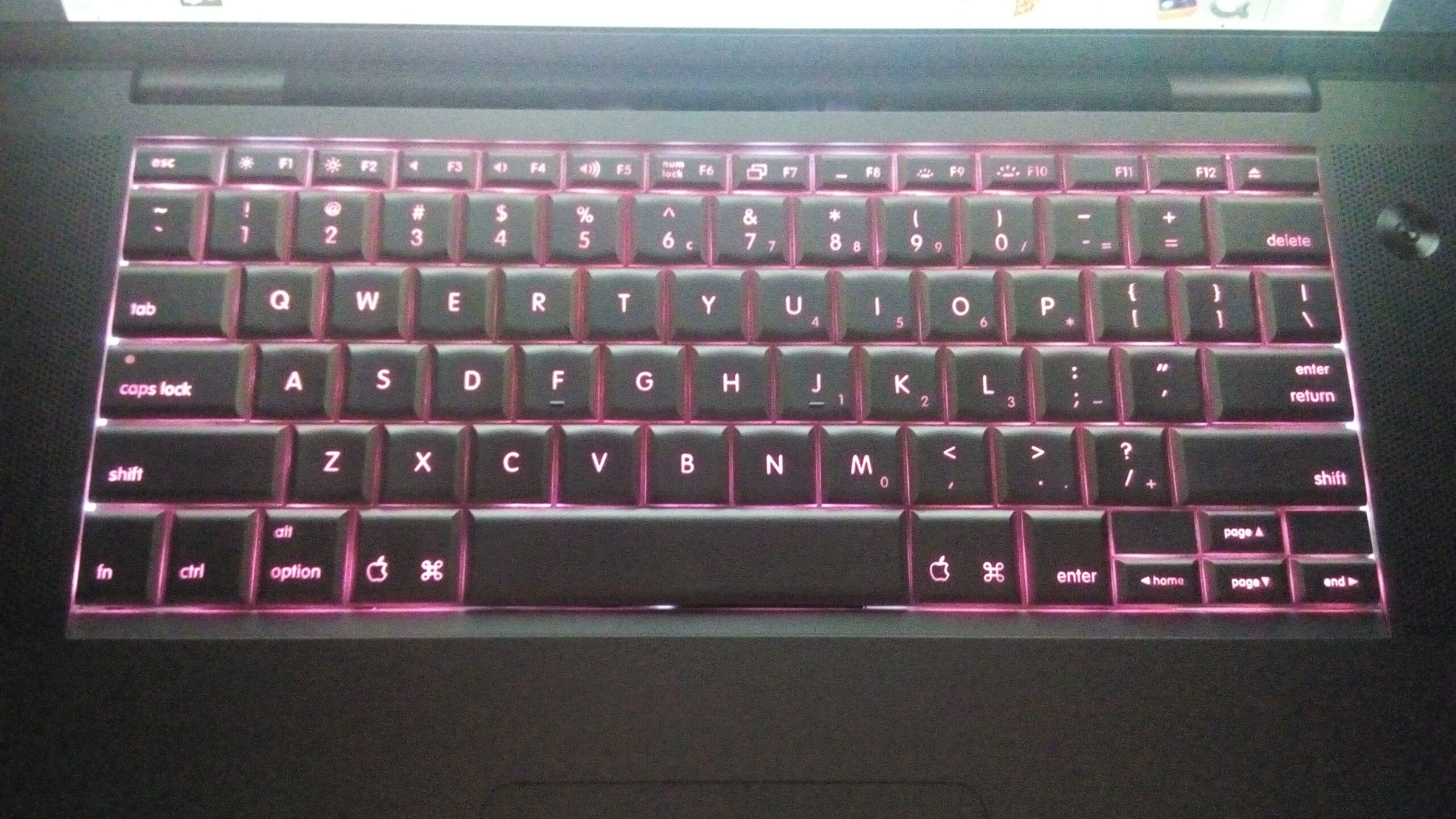 Using a red-color plastic insert for the backlit keyboard, it turned into a nice shade of red. This was done in Late 2015 on a 17-Inch 2007 MacBook Pro, which was my laptop daily driver then.