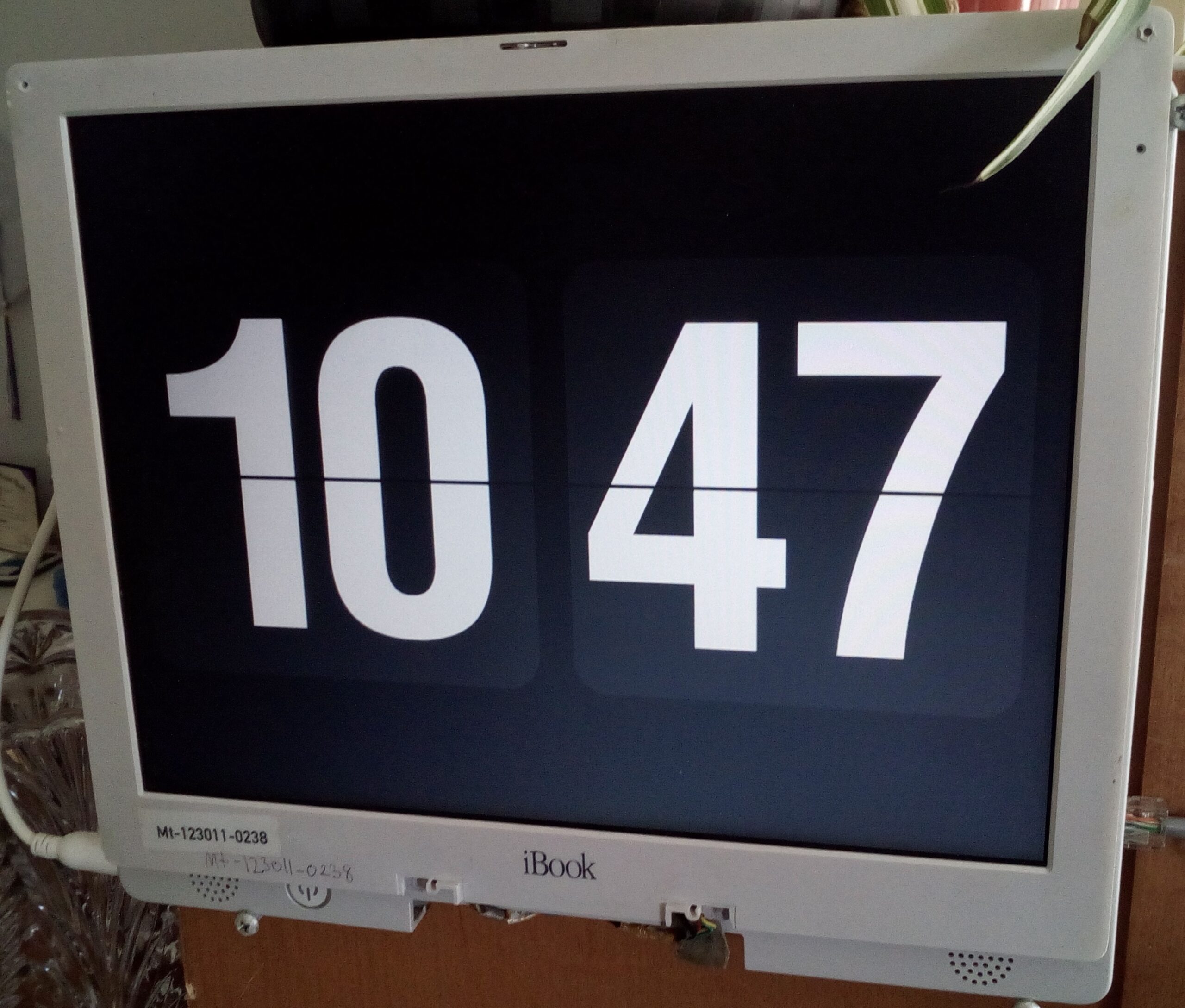 It’s not touchscreen, you need an external mouse and keyboard. It was already broken to begin with, this came out of the piles of iBook G3 parts I had between 2010-2015. The point was it ran Fliqlo or could be mounted onto something and be a compact portable iMac G3 of sorts.