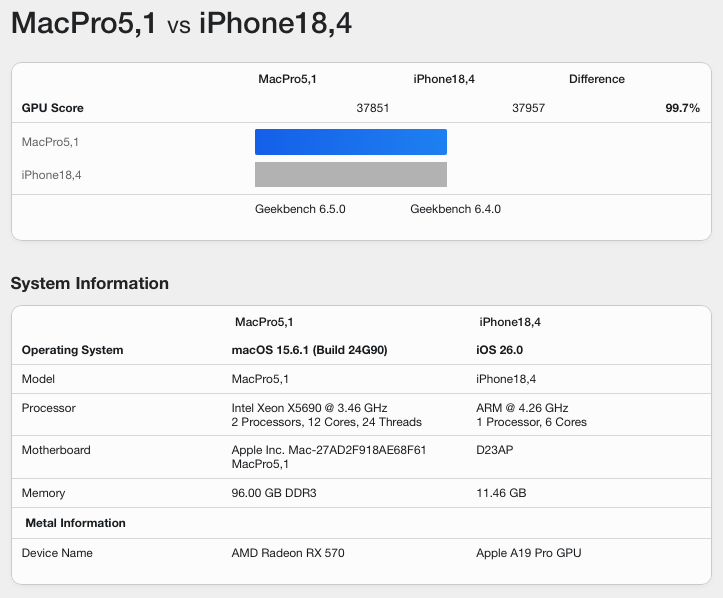 An A19 Pro GPU could compare to an RX 570 in a Mac Pro 5,1