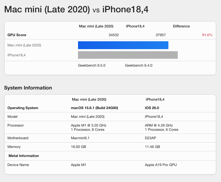 An iPhone Air GPU is more powerful than an M1 Mac minis GPU