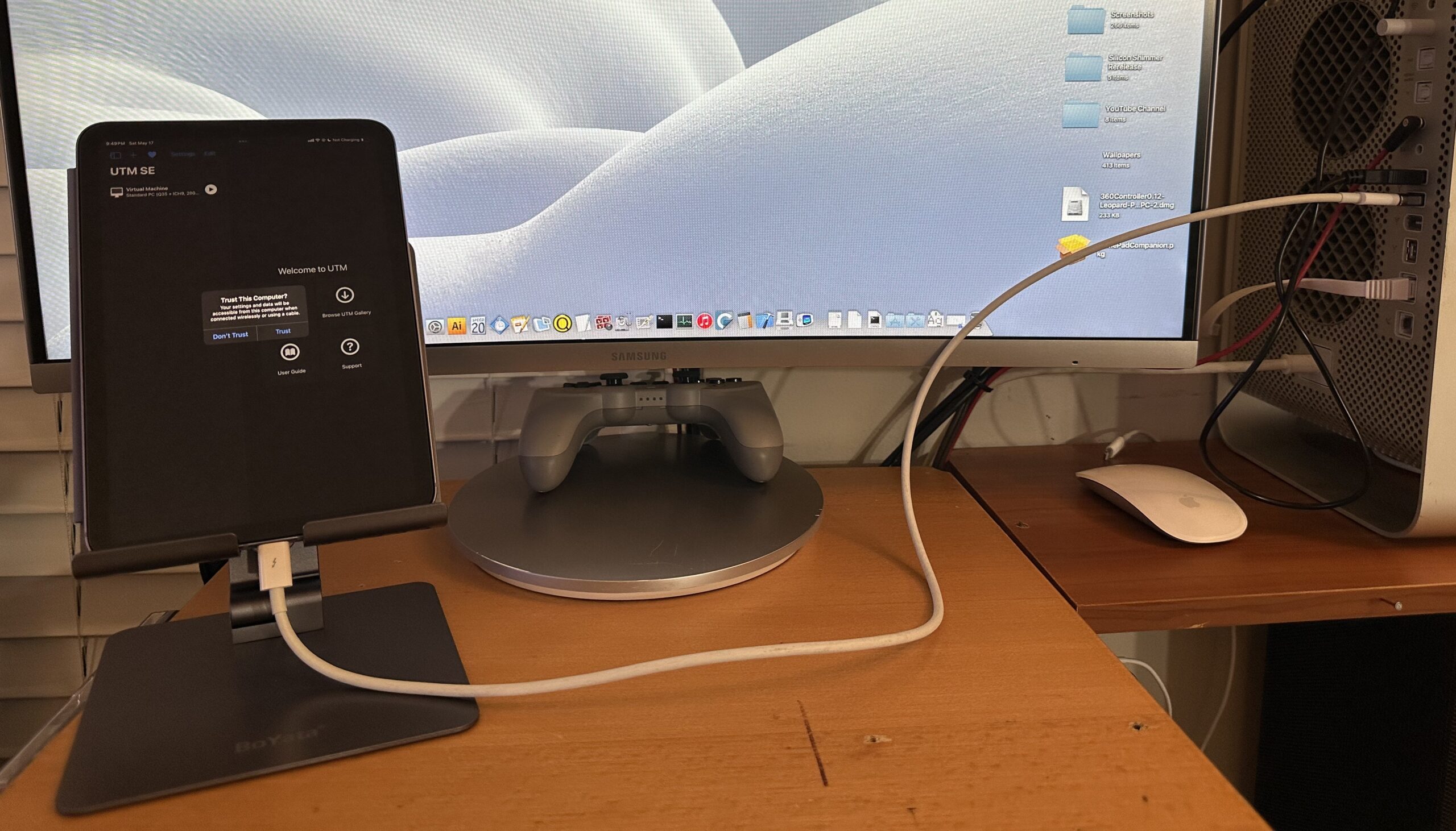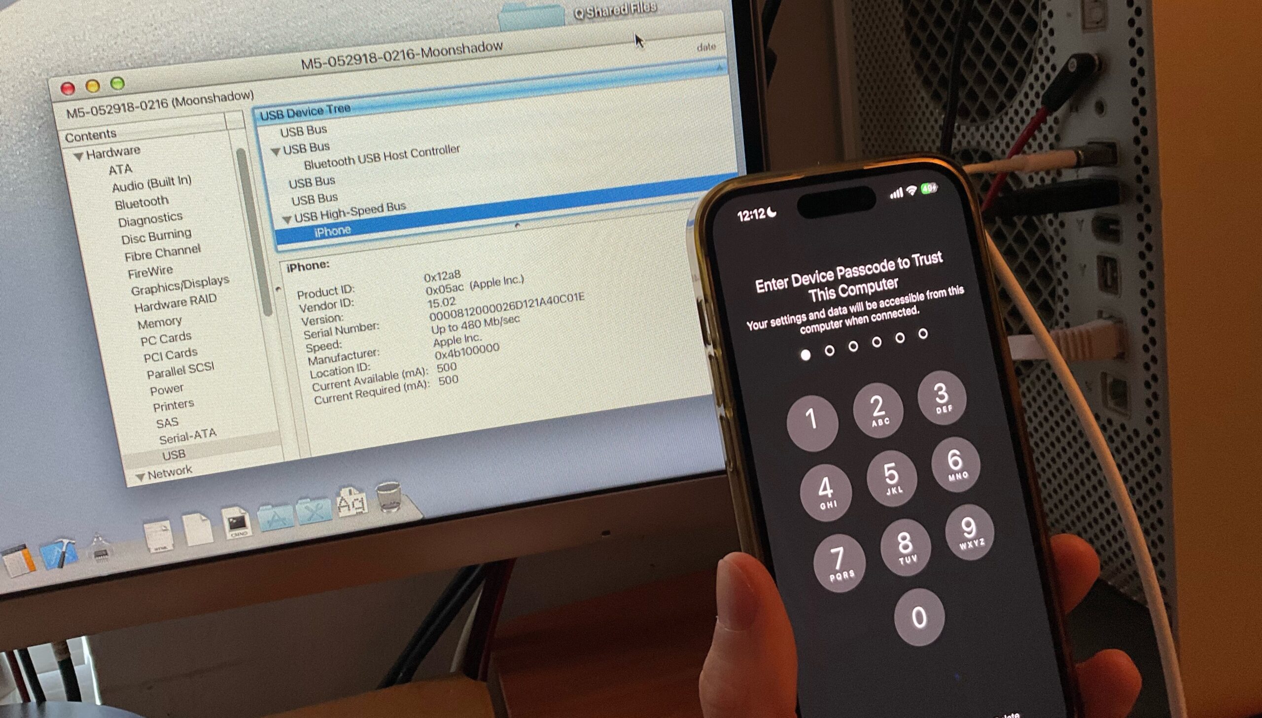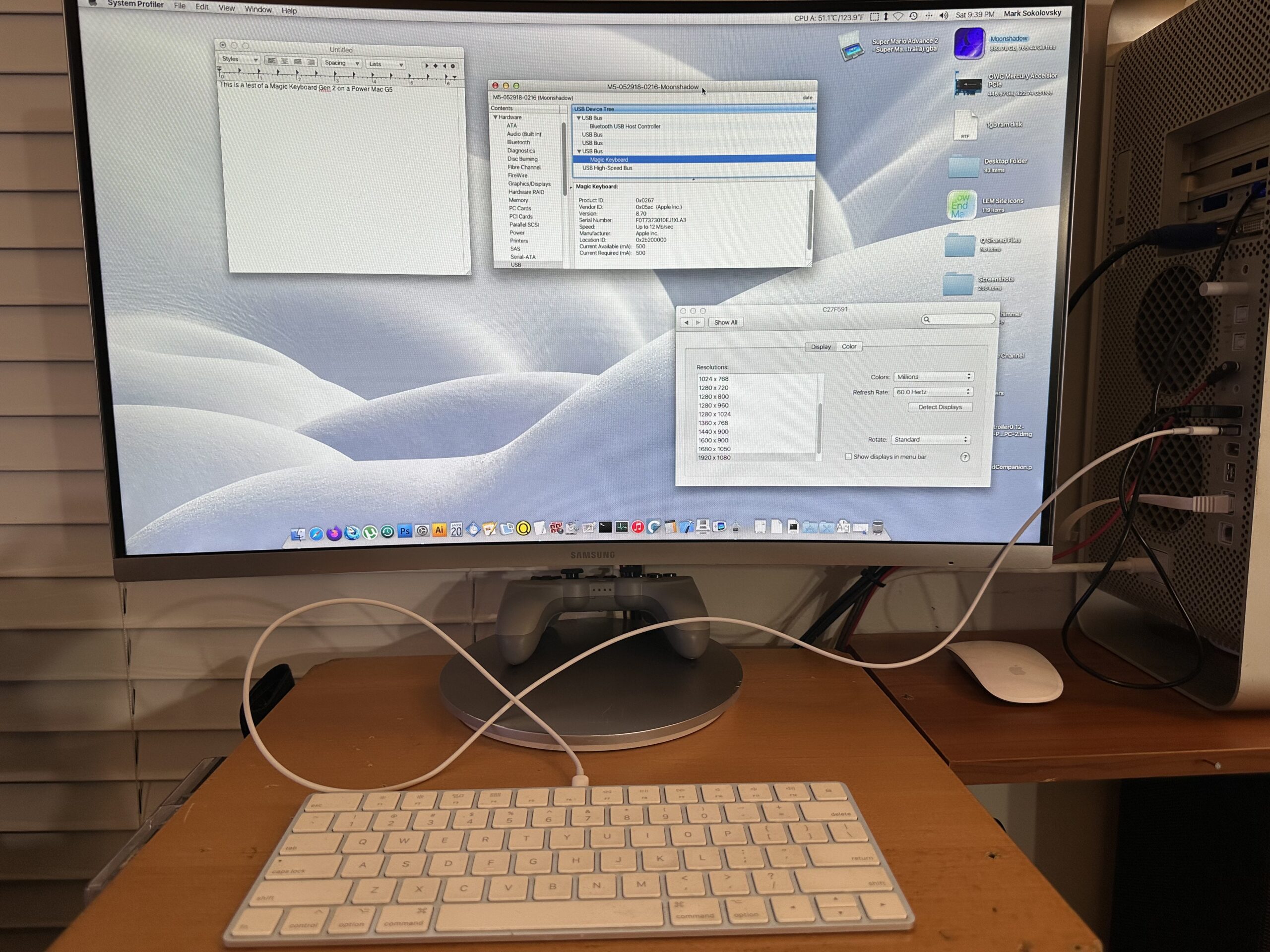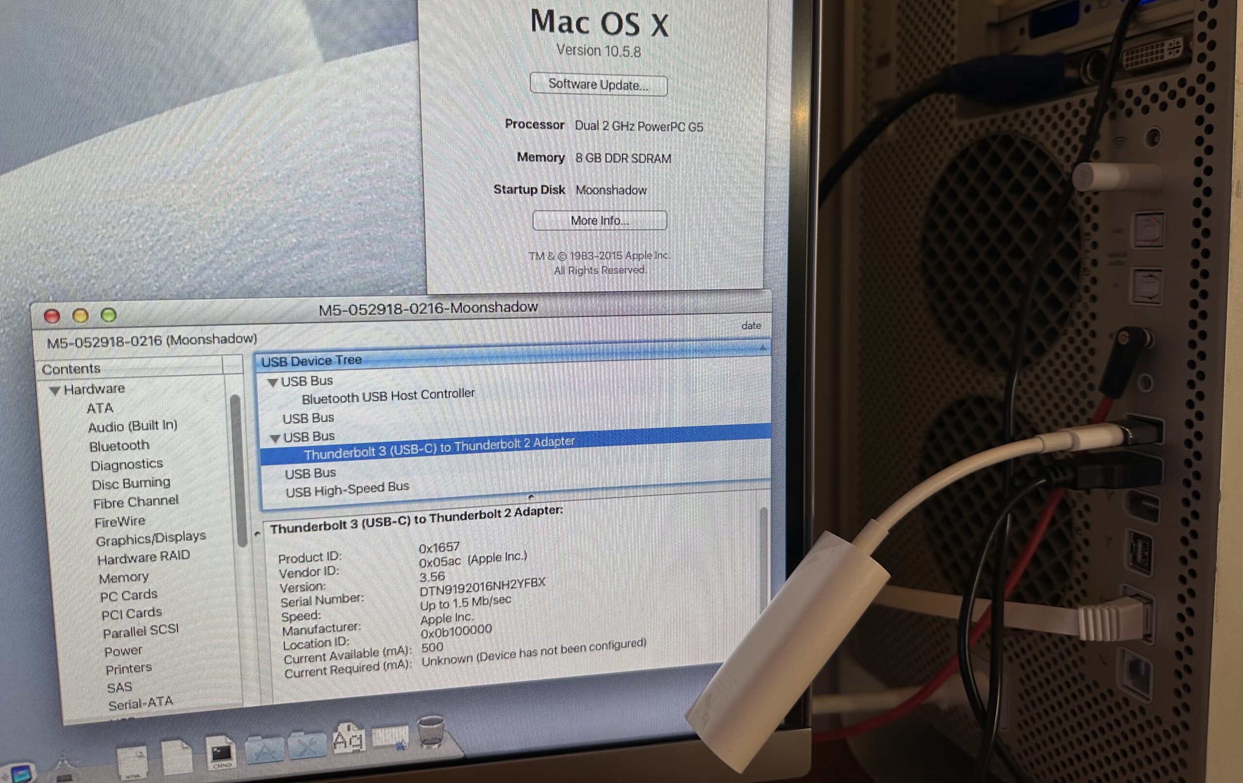 How a USB-C 2.0 cable connects to a PowerPC Mac