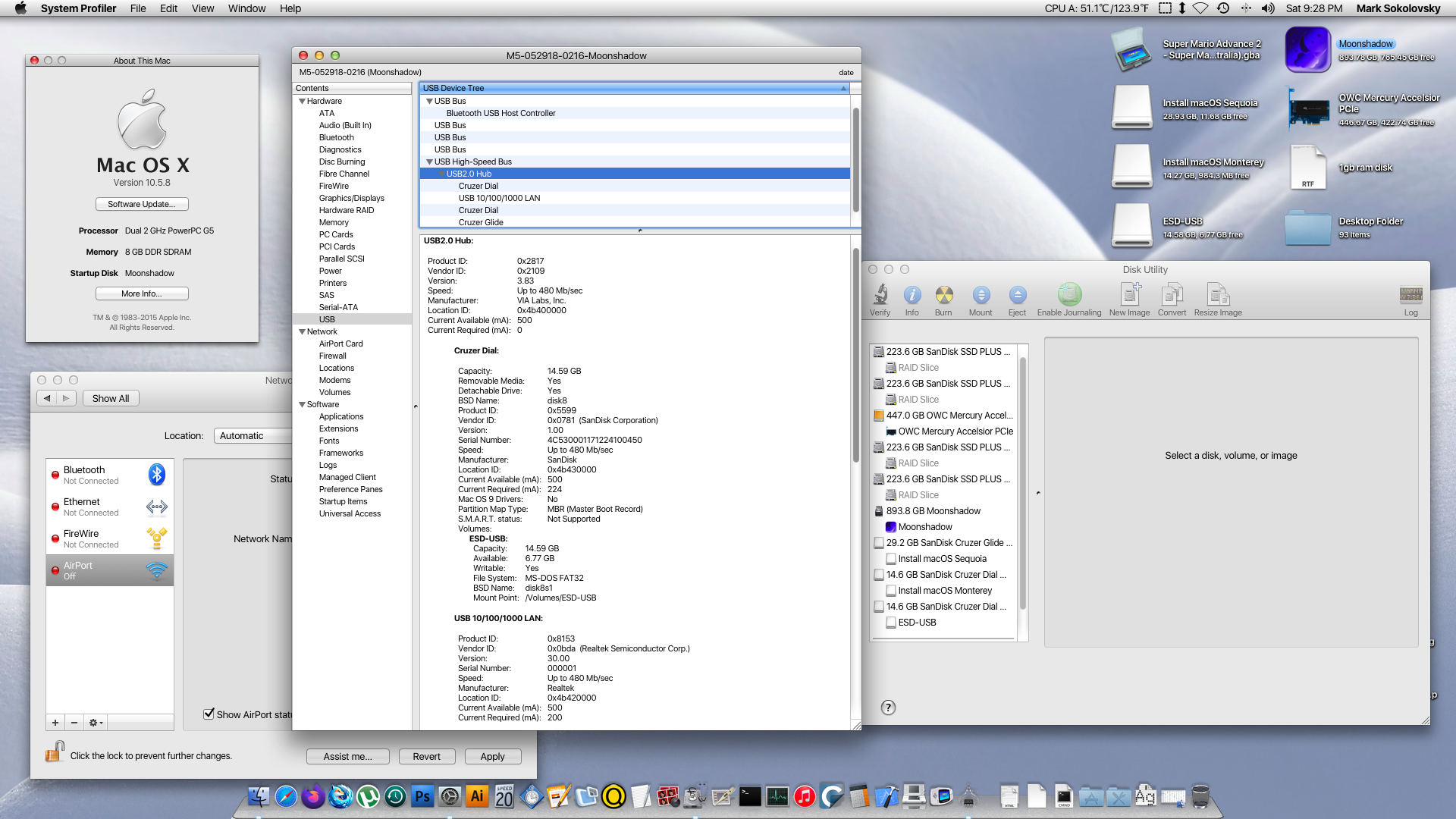 To my surprise, there were a number of things properly named in system profiler which I didn’t expect at all for the system to recognize. What struck a chord with me, however, is what ended up working completely unexpectedly.