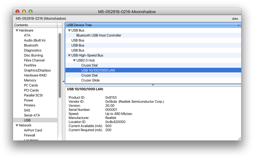 It’s no surprise a USB hub works (but the ethernet doesn’t). We won’t ever get USB 3.0 speeds but this isn’t about having the speed, it’s about functionality! The device fully shows up in system profiler the way it’s supposed to and I’m willing to bet some terminal commands/a kext file/something can make the ethernet work too. This is a Realtek adapter after all..