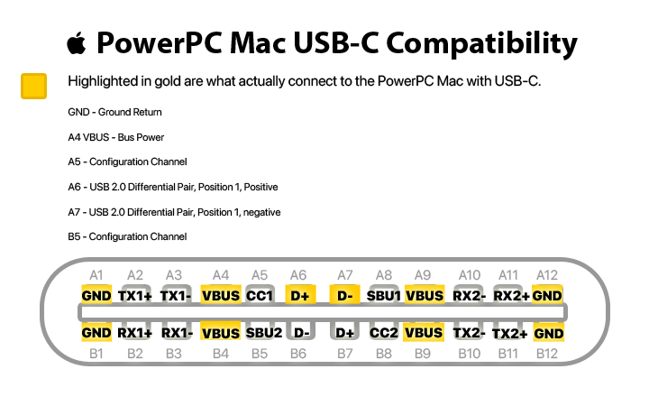 USB-C is a reversible-connector that is universally used on almost every modern device, whether it’s a smartphone, a Mac, PC, etc; the connector port is a widely used industry standard in 2025. Although the connector port was designed long after USB 2.0 or the release of any PowerPC Mac, it was implemented with USB 2.0 baked right in. There are missing features versus USB 3.0, but it still works.