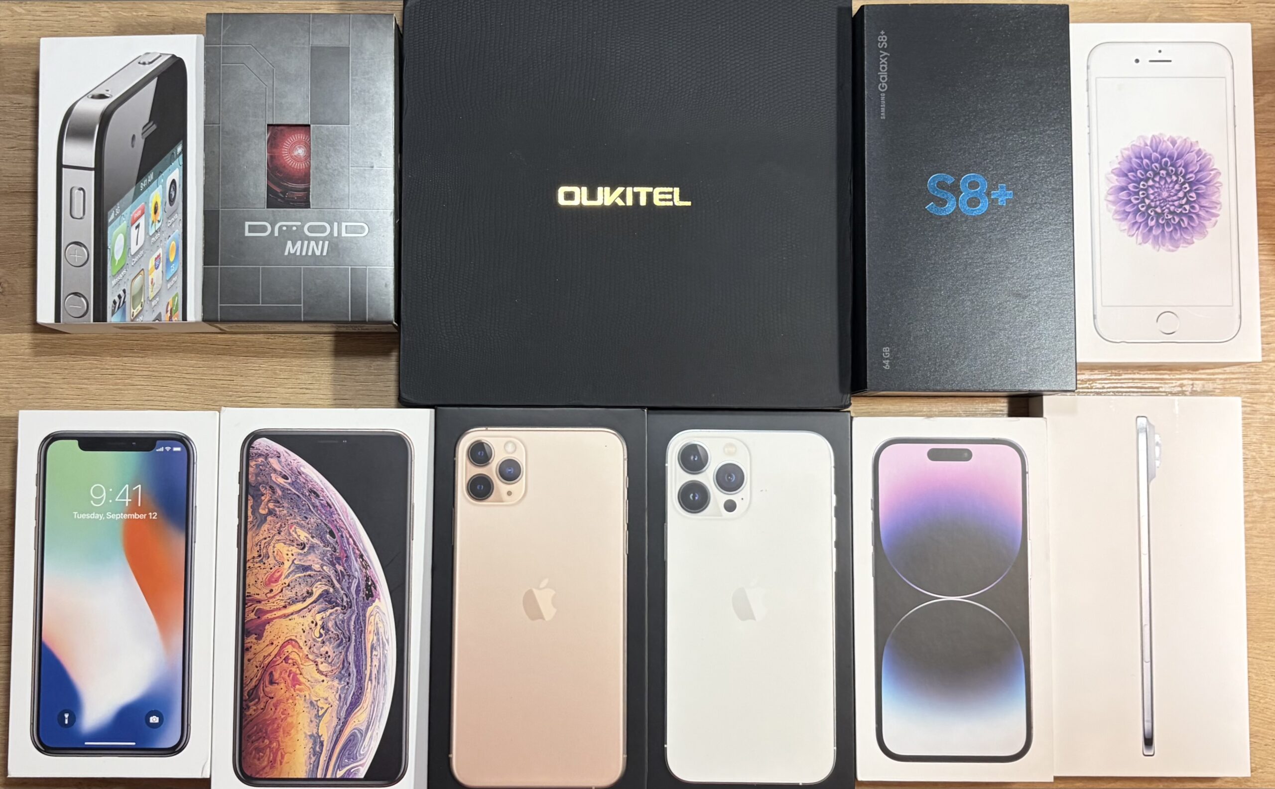 This year I exchanged my outgoing device to get the latest iteration to this collection, a 256 GB iPhone Air in Sky Blue – the first time upgrading in three years since previously upgrading to a 128 GB iPhone 14 Pro in Deep purple. Today I wanted to reflect back on the devices I referred to as my phone at one point or another, sharing a few stories along the way, some thoughts, maybe a little history as well. Pictured above is most of my collection over the years, from 2011 onwards.