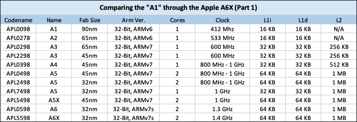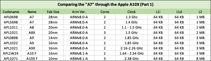 - First Apple-Designed SOC to feature any L3 cache, 4 MB Inclusive. Prior Apple SOCs had none.