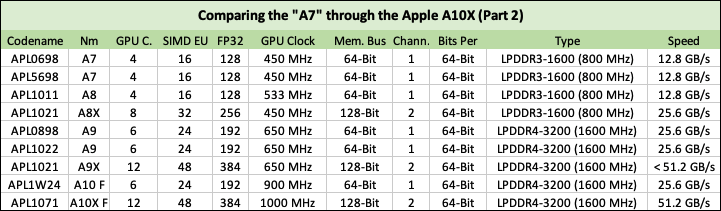 . - GPU clock is also improved, increasing to 650 MHz w/249.6 GFLops of performance. This is a drastic leap forward over the even more powerful iPad A8X, which only did 230.4 GFLops.