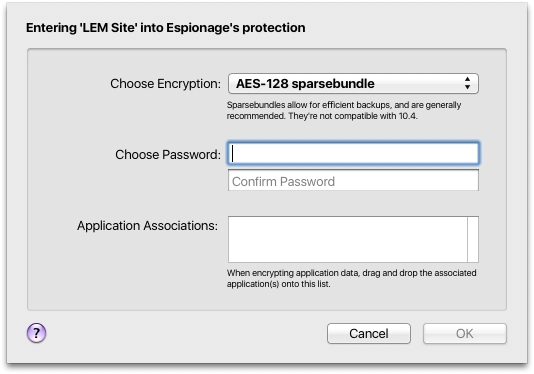 - Change encryption settings: AES-128 or AES-256 Sparsebundle or Sparseimage