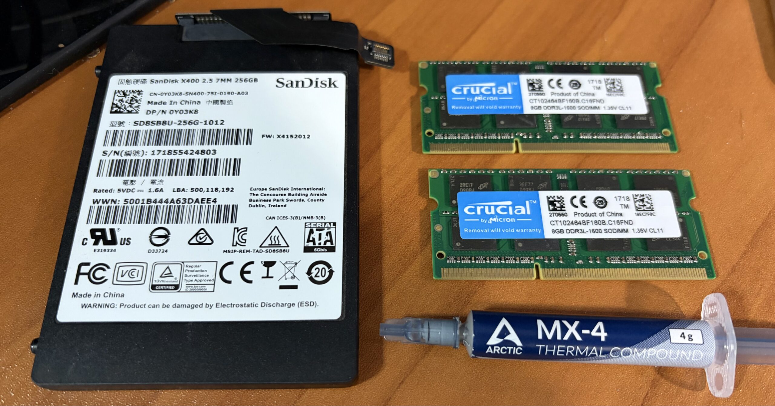 - 16GB RAM – 2x 8 GB 1600 MHz DDR3L sodimm sticks ($20 – $40)