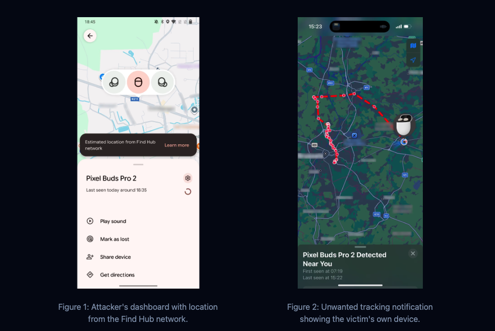 To quote the website: “Google Fast Pair enables one-tap pairing and account synchronization across supported Bluetooth accessories. While Fast Pair has been adopted by many popular consumer brands, we discovered that many flagship products have not implemented Fast Pair correctly, introducing a flaw that allows an attacker to hijack devices and track victims using Google’s Find Hub network. We introduce WhisperPair, a family of practical attacks that leverages a flaw in the Fast Pair implementation on flagship audio accessories. Our findings show how a small usability ‘add-on’ can introduce large-scale security and privacy risks for hundreds of millions of users.”