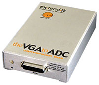 Simply connect the supplied VGA (M-F) cable to the input side of the VGA to ADC Conversion Box. Then, connect the Apple flat panel display to the ADC output connector of the VGA to ADC Conversion Box. All VESA standard resolutions are supported. Also Apple resolutions for the 15" (1024 x 768) and 17" (1280 x 1024) Studio Display, 22" Cinema Display (1600 x 1024), 23" Cinema HD Display (1920 x 1200) and the new20" Apple Cinema Display (1680x1050).