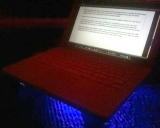 Not only does it blow cold air on the bottom (either blowing cold air or sucking the heat away – I’m not quite sure), but it also raises the bottom of the MacBook off my legs (or desk), allowing more air flow, stopping the heat from being trapped.