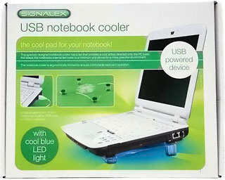 My latest find impressed me so much I thought I would share it. With my recent concerns about the heat from my Early 2009 MacBook – especially under heavy use – I stumbled across a Signalex USB Notebook Cooler. I had been looking a laptop coolers, either in the form of USB powered fan based or thermo-reductive heat dissipation pads, and not only can they be expensive, but their effectiveness varies – and not in the “the more expensive the better” theory either.