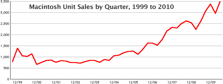 Macintosh unit sales have been on the increase since 2004 and continue